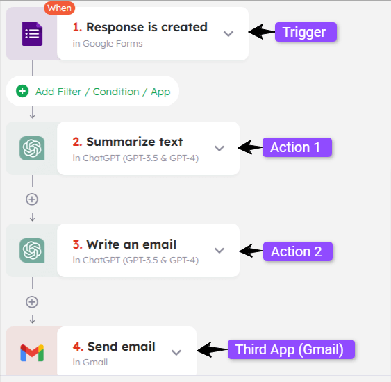 To simplify all this stuff, connect Google Forms to ChatGPT and automate all the manual tasks like: