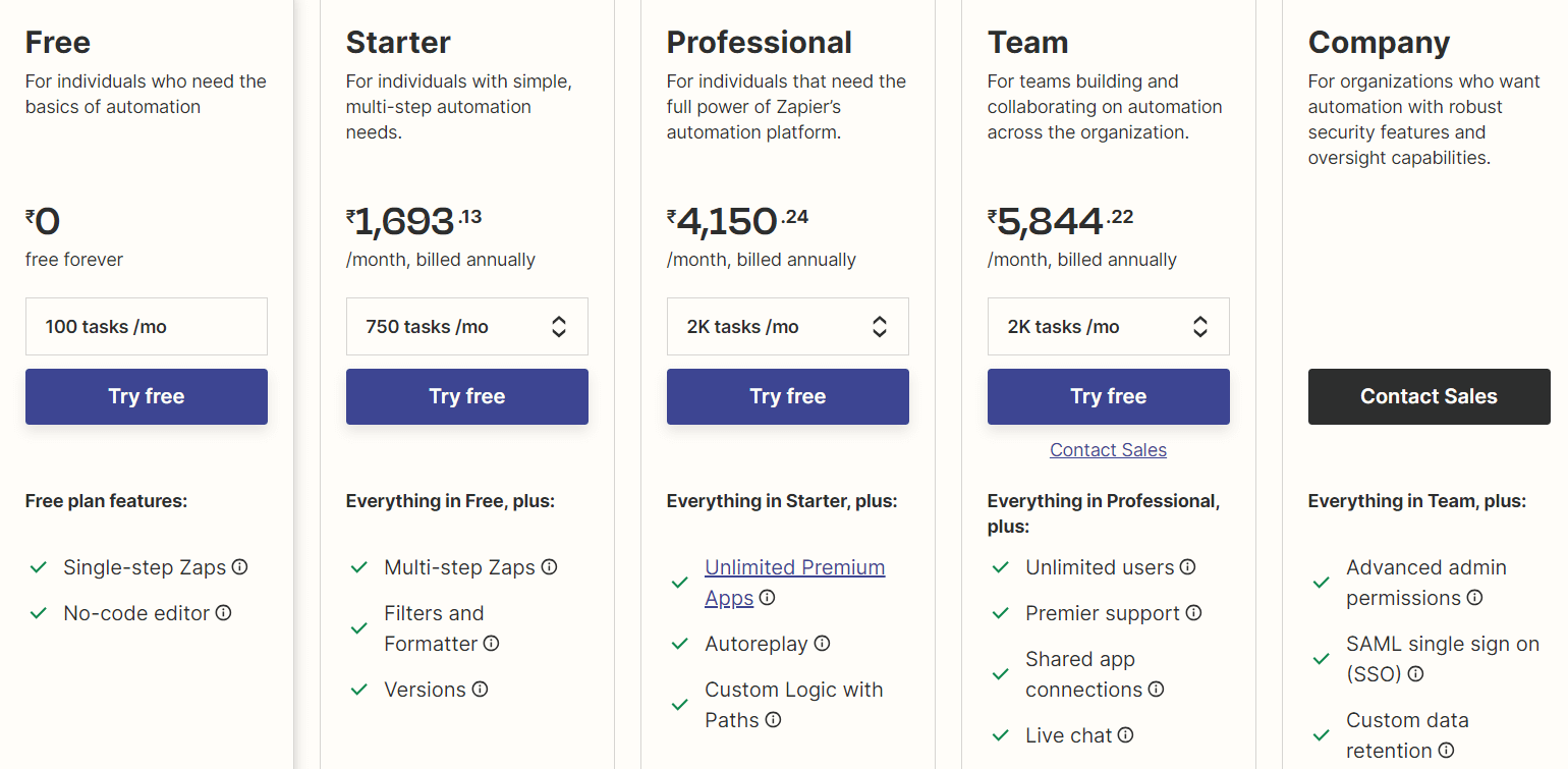 Zapier is a well-known automation tool that aims to connect your favourite apps and automate repetitive tasks. However, its free plan comes with limitations on the number of automations you can create each month, which may not be as flexible as you’d like.