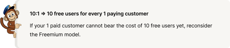 So, if your 1 paid customer cannot bear the cost of 10 free users yet, you must reconsider the Freemium model.