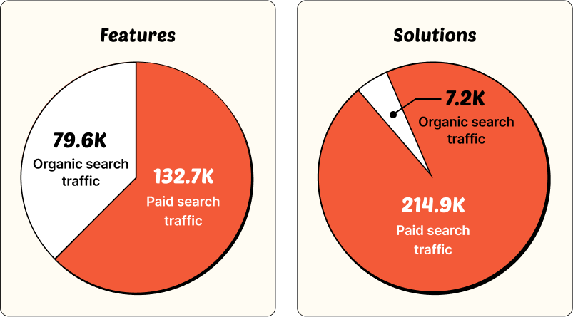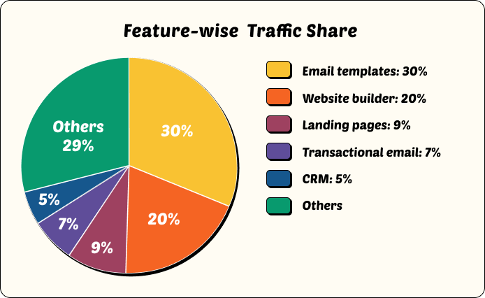 Mailchimp drives significant branded traffic from its features page. Here’s the breakdown: