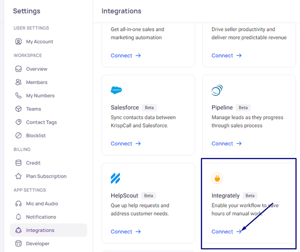 Integrating your KrispCall account with Integrately opens your path to several useful features that are sure to offer you a helpful hand.