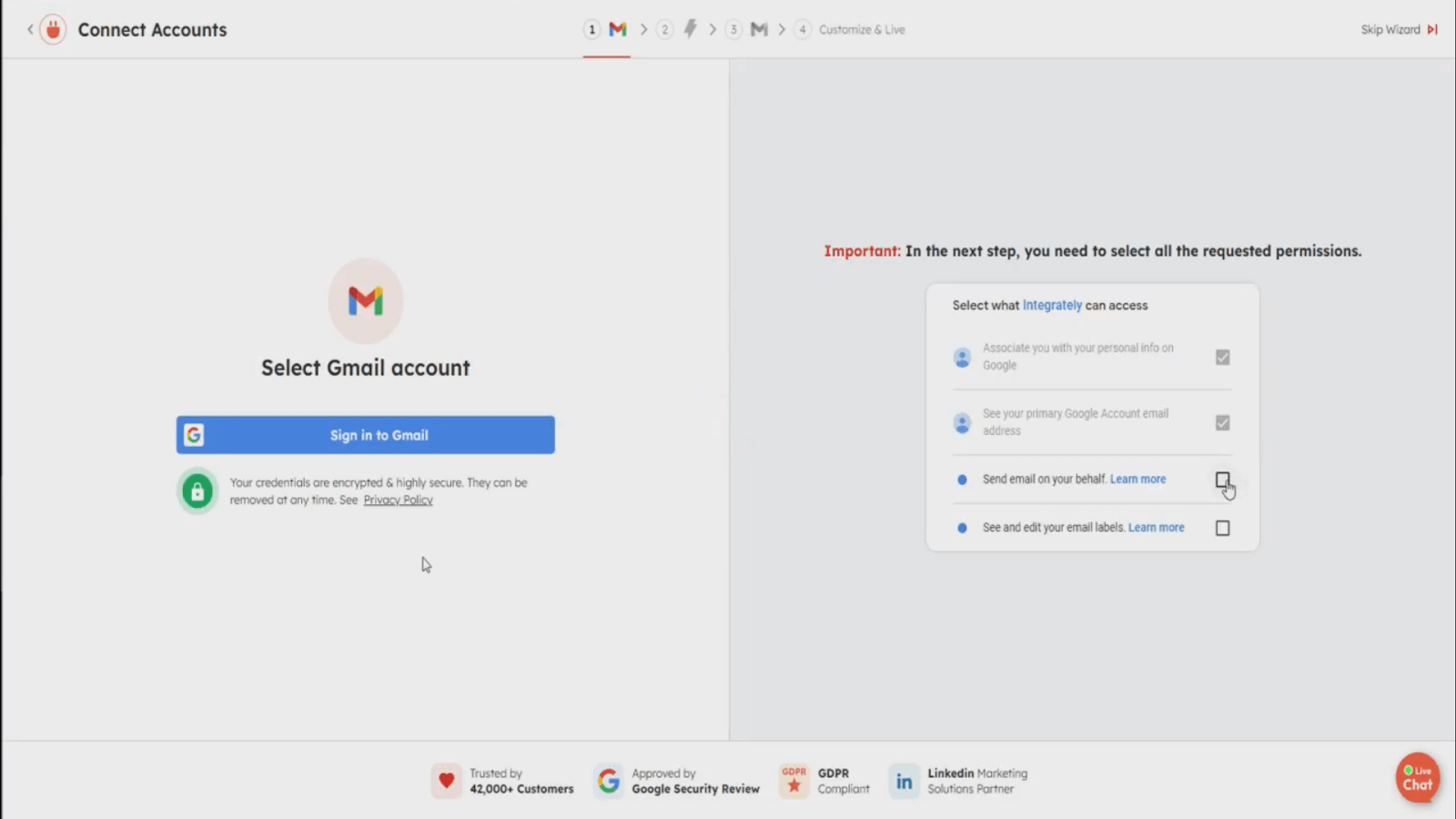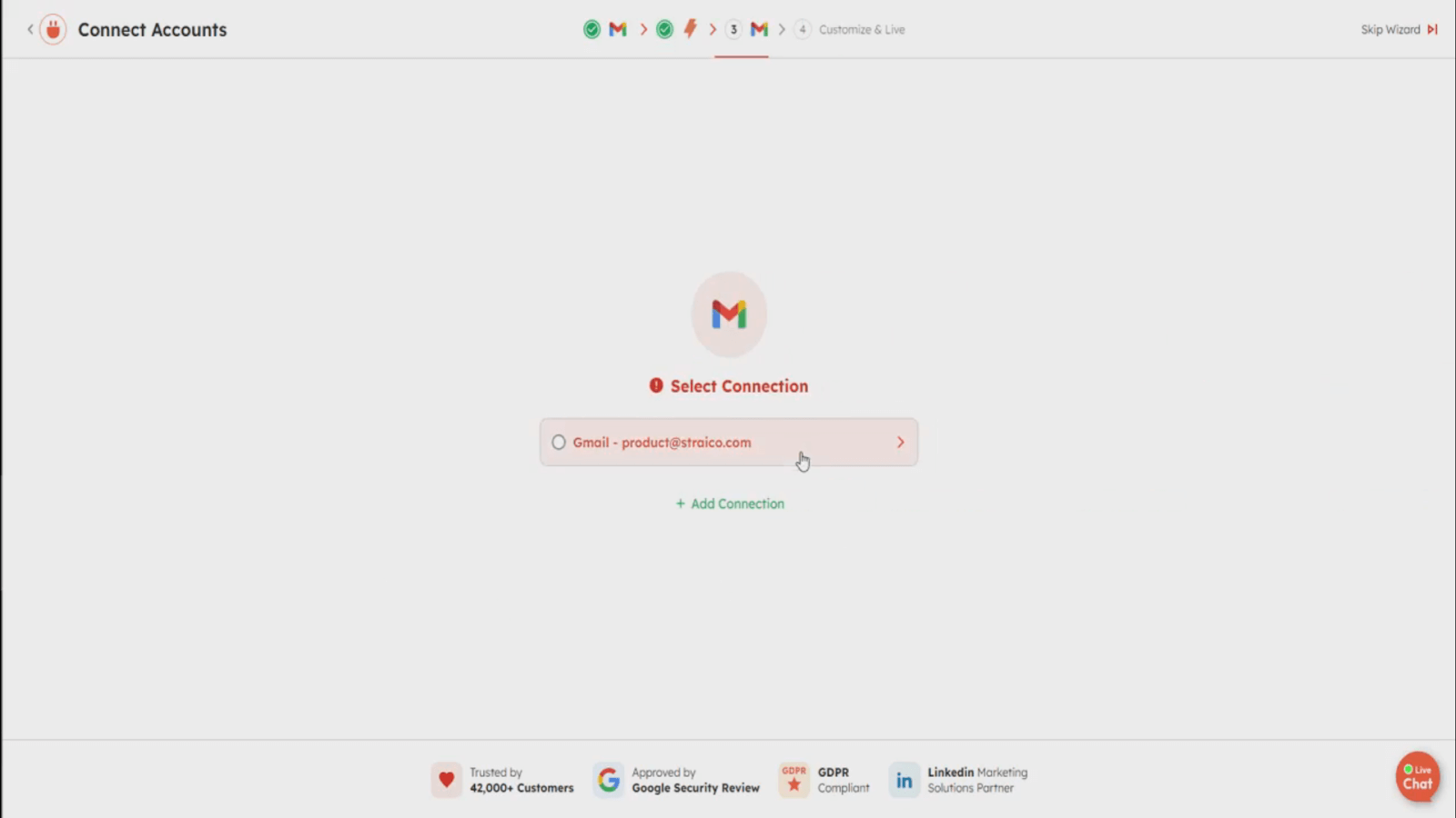 2. You’ll want to connect any necessary accounts. For our example, integrating your Gmail account is crucial to allow the automation to access your emails and send replies.