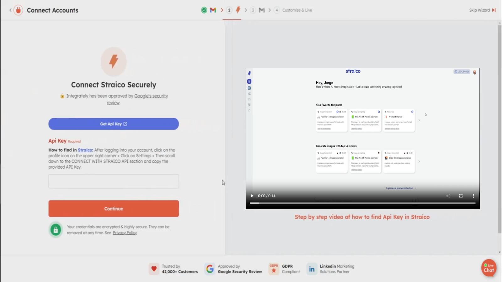 4. Connecting the Straico API: This step is critical as it enables Integrately to use the generative AI capabilities provided by Straico.
