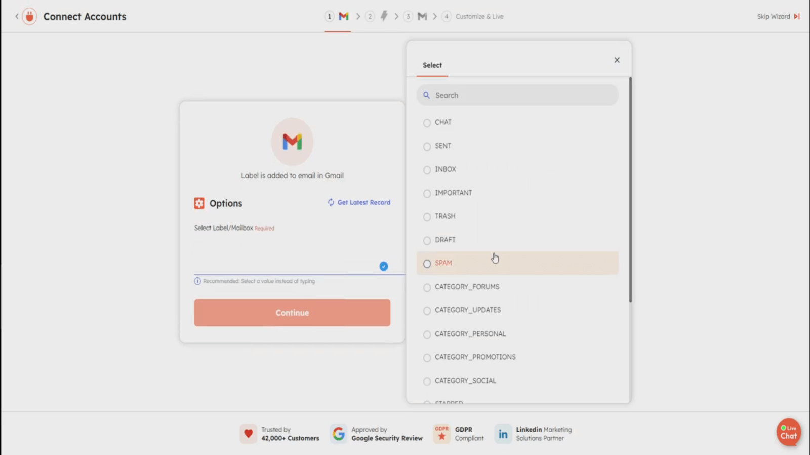 3. Select the specific Gmail label you’ll be using—in this case, the “Inquiry” label.