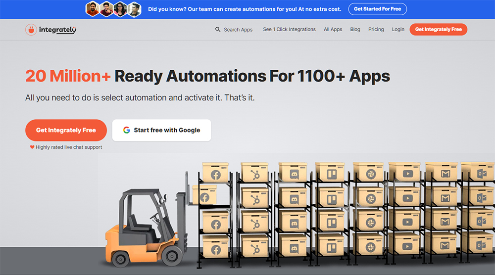 Integrately is a no-code automation tool that connects your favorite applications in just 1-click.